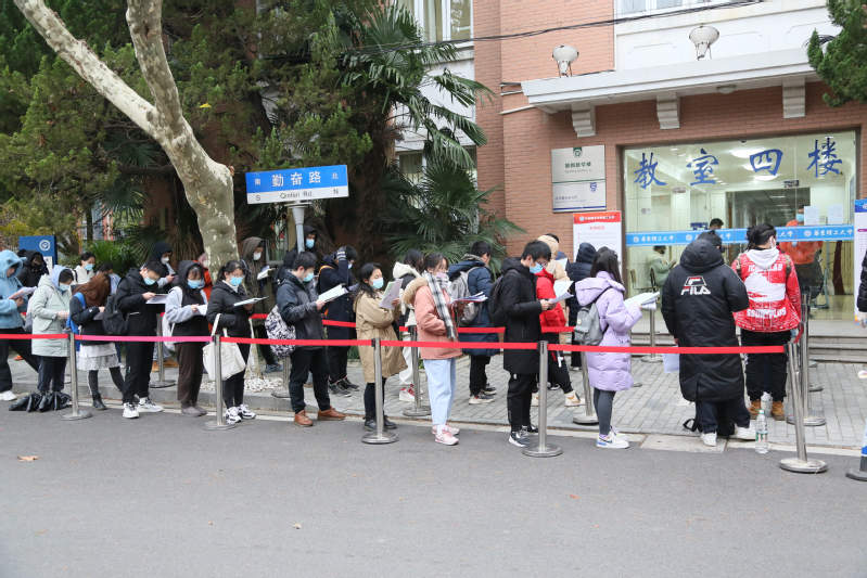 为了保障校外考生快速、顺利入校考试,学校于12月24日面向校内外考生开启验证服务,考试当天,已提前验证的校外考生,可通过“已验证考生专用通道”快速入场。研考日遇到寒潮来袭,华理用暖心举措为考生御寒。在徐汇校区主考点,学校将逸夫楼演讲厅和报告厅、八教101室、四教大厅设置为考生休息区,并提供了免费的热水、点心、牛奶和八宝粥。