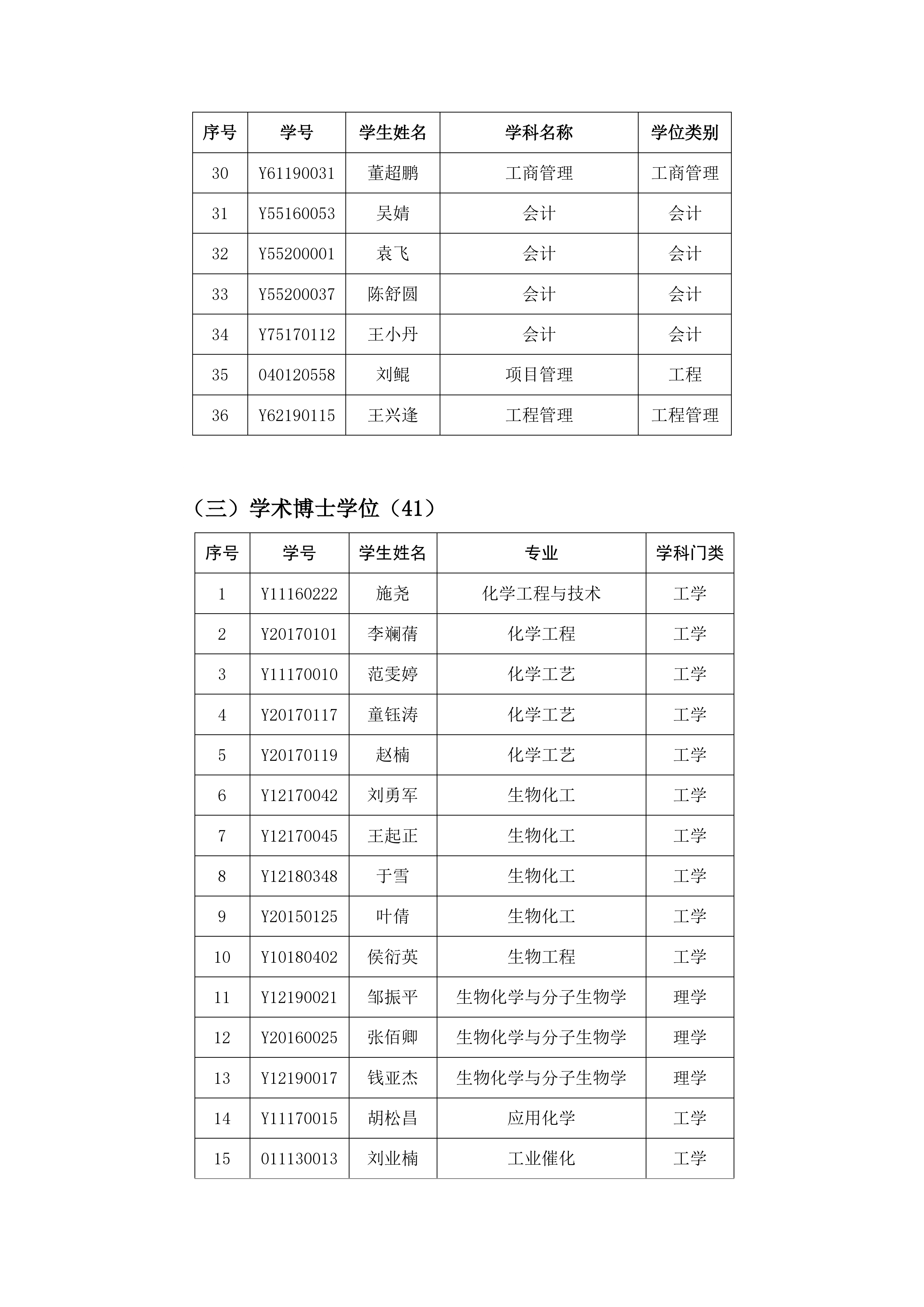 学位评定委员会公告