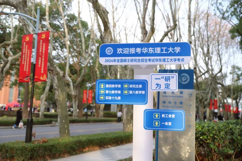 “一‘研’为定”“‘研’途璀璨 终将上岸”……分布在校园里的指示牌上,温馨的祝福话语给追梦考生送去冬日暖阳。