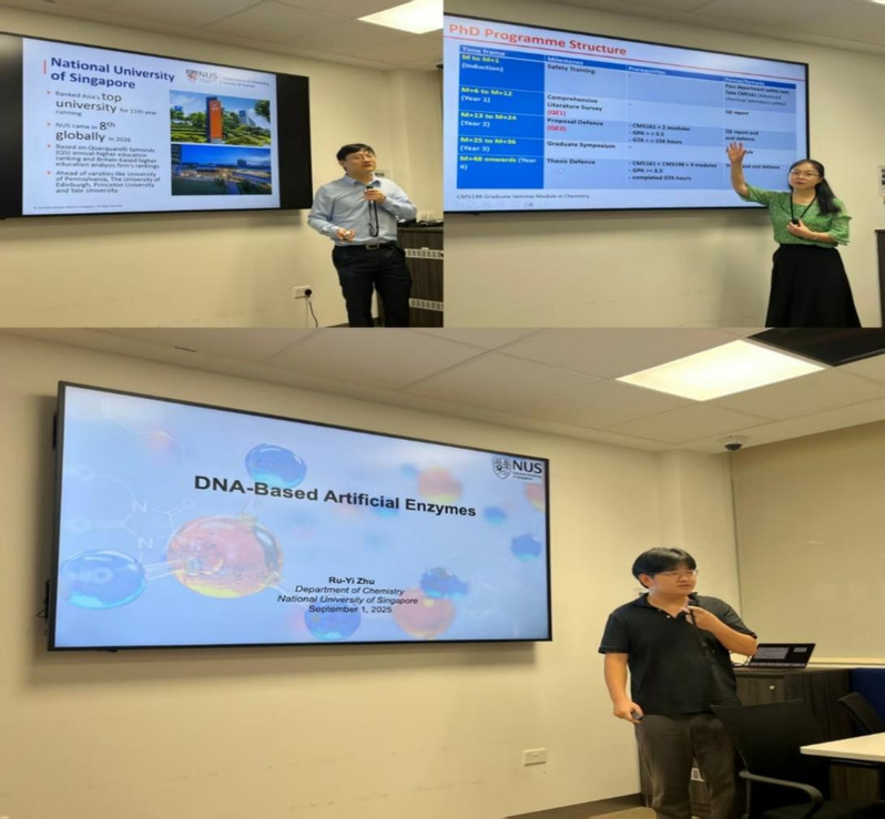 在新加坡国立大学(NUS),访学团受到化学学院教授团队的热情接待。Wu Jie教授与Chi Chunyan教授系统介绍了NUS化学学科的发展历程、前沿研究方向以及面向中国学生的多项联合培养政策。助理教授Ruyi Zhu带来题为“Modifying DNA and RNA for Catalysis and Medicine”的精彩学术报告,为同学们展示了生物化学交叉领域的最新进展。午间,师生们实地走访了Wu教授与Chi教授的课题组,并参观了CMMAC先进材料实验室,近距离体验国际领先的科研设施与实验环境。